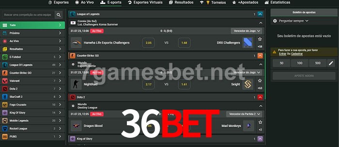 O 36Bet oferece uma grande seleção de opções de apostas em e-sports com probabilidades competitivas